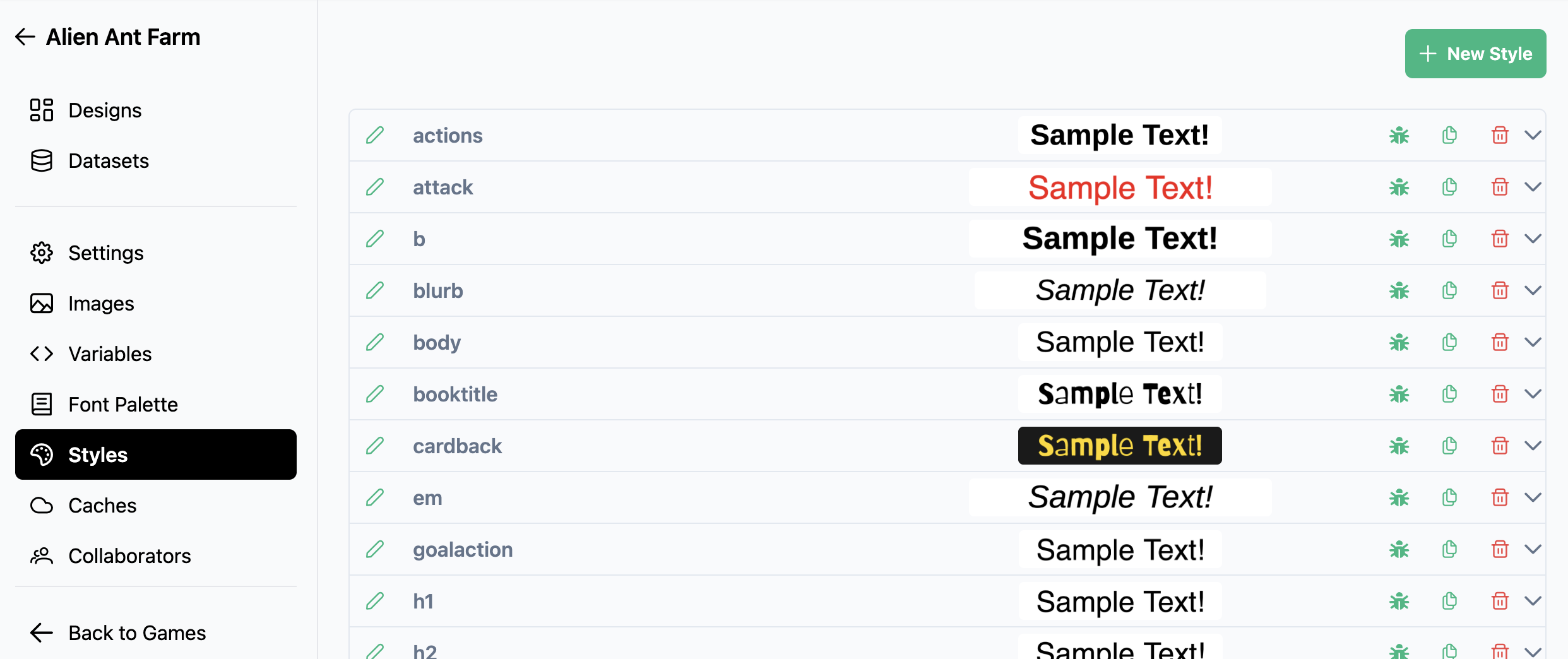 A centralized location to set set shared font styling and sizing so you can edit it in one place and propagate throughout your game.