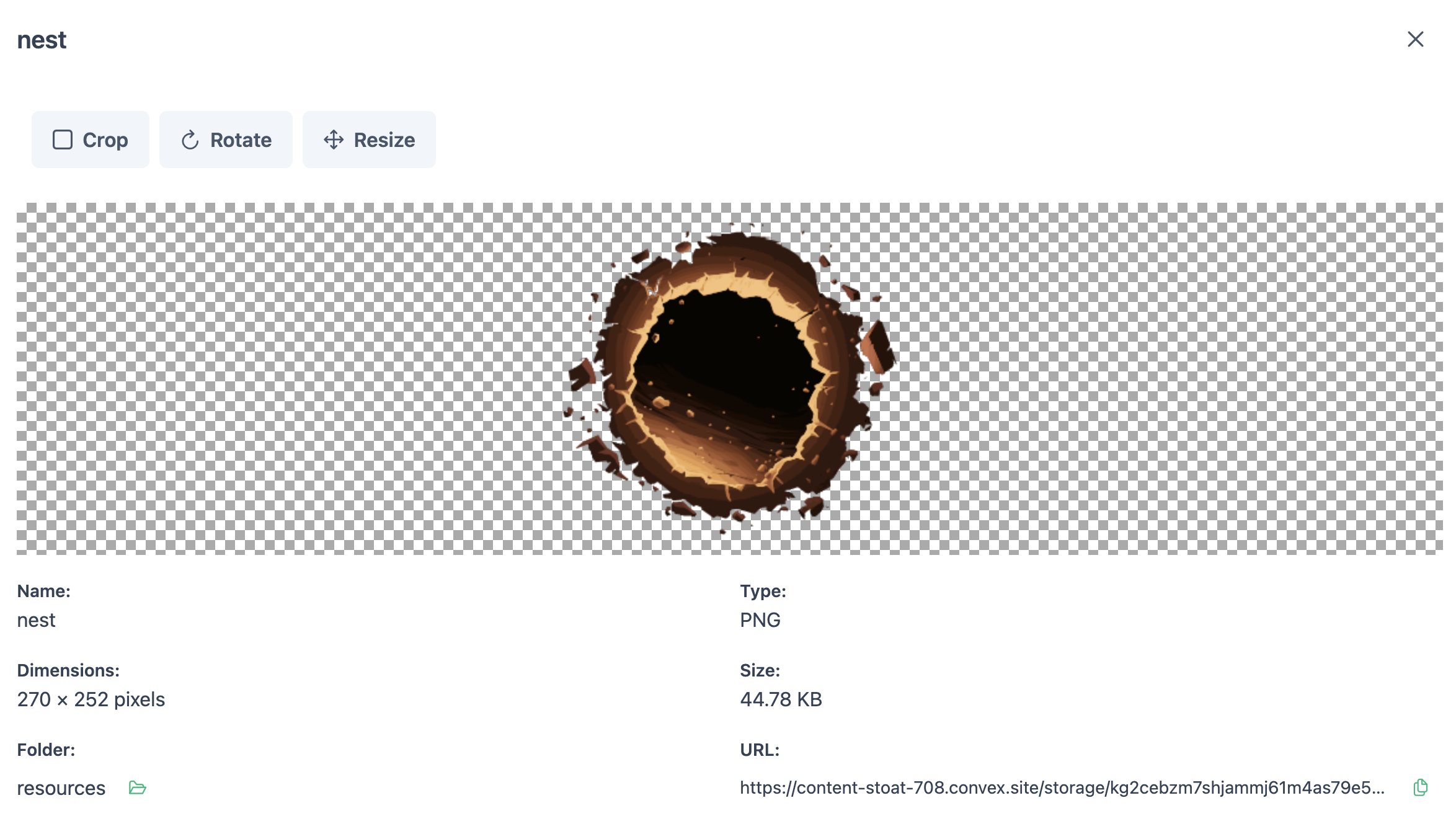 Note that the name of the image is very important as it is how the image will be referenced through-out Component.Studio. Therefore it must be unique. It will be used in variable names like {{ images.nest.url }}.