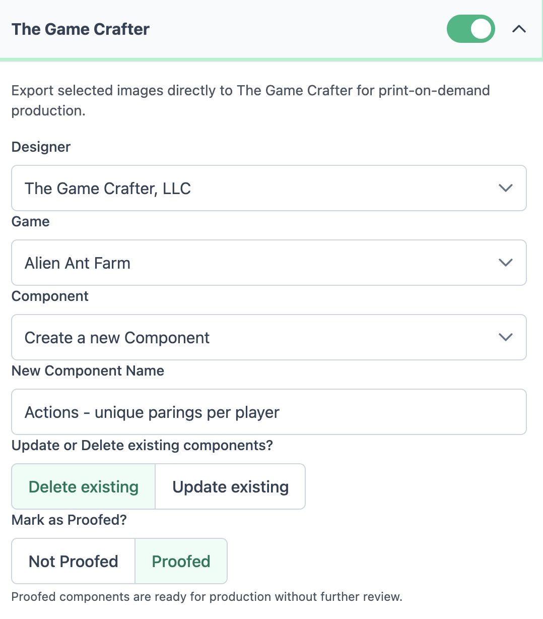 Purpose: Upload components directly to The Game Crafter for professional print-on-demand production.